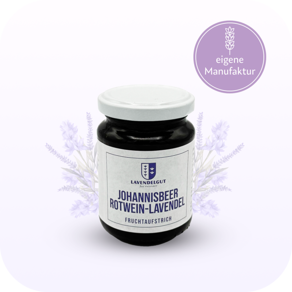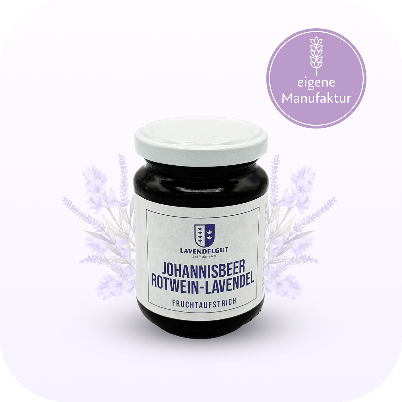 Unser Johannisbeer Rotwein Lavendel Fruchtaufstrich schmeckt auf dem Butterbrot genauso gut wie zu gebackenem Camembert, zu Rotkraut, an Wildgerichten oder zu Gebäck.