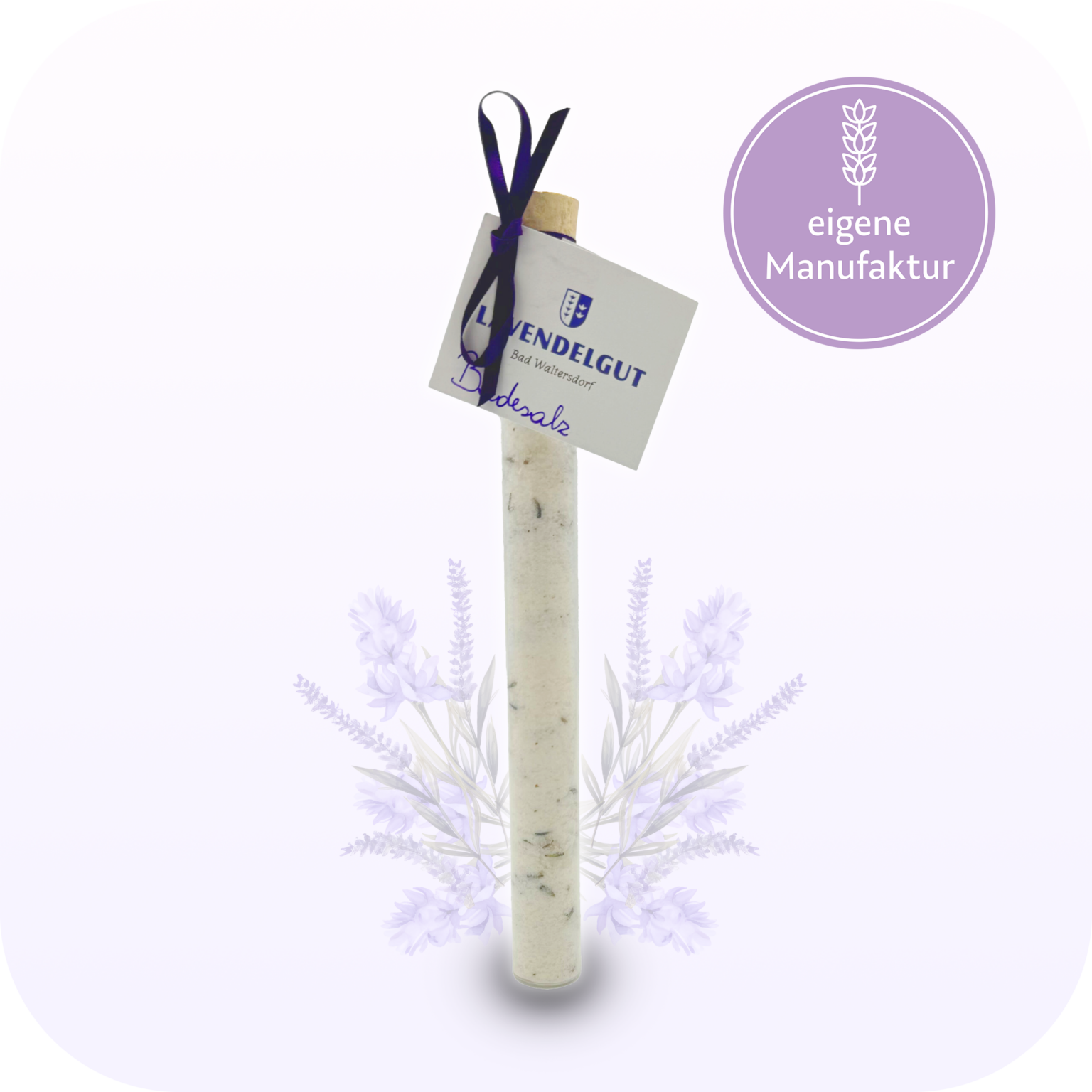 Lavendel Badesalz aus pflegendem Meersalz mit ätherischem Lavendelöl. Hergestellt in unserer hauseigenen Manufaktur mit natürlichen Rohstoffen.