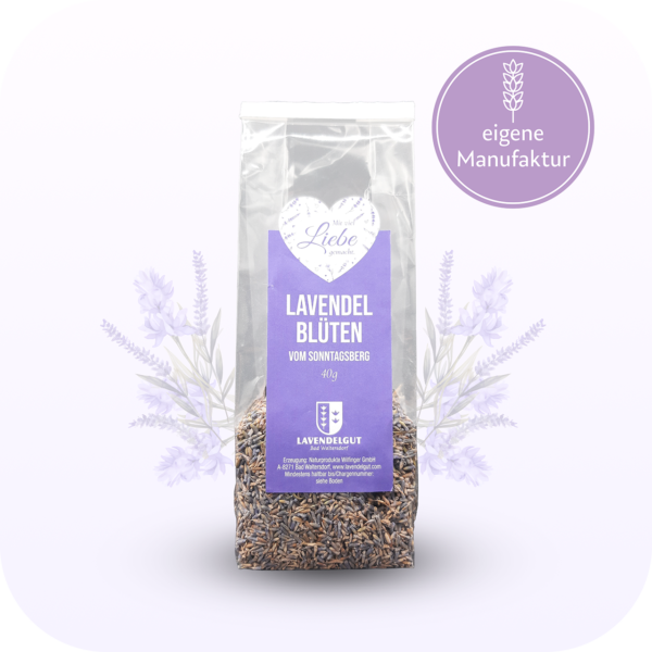 Der Lavendel stammt von unserem Feld in Bad Waltersdorf. Er wird von Hand gepflegt und geerntet. Garantiert 100%ige Natur.