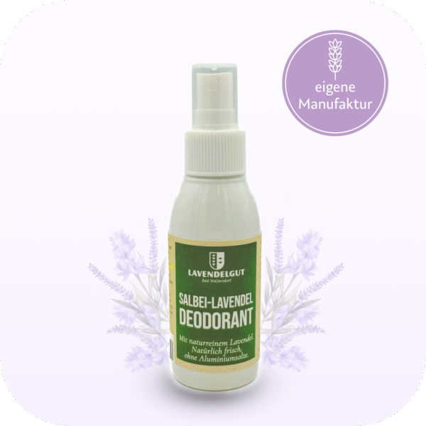 Unser Salbei – Lavendel Deodorant umgibt Sie mit einer belebenden Brise balsamischer Frische – ohne die Poren zu verschließen. Ätherische Öle von Lavendel, Bergamotte, Melisse und Salbei wirken mild desodorierend, ohne die natürlichen Hautfunktionen zu beeinflussen.